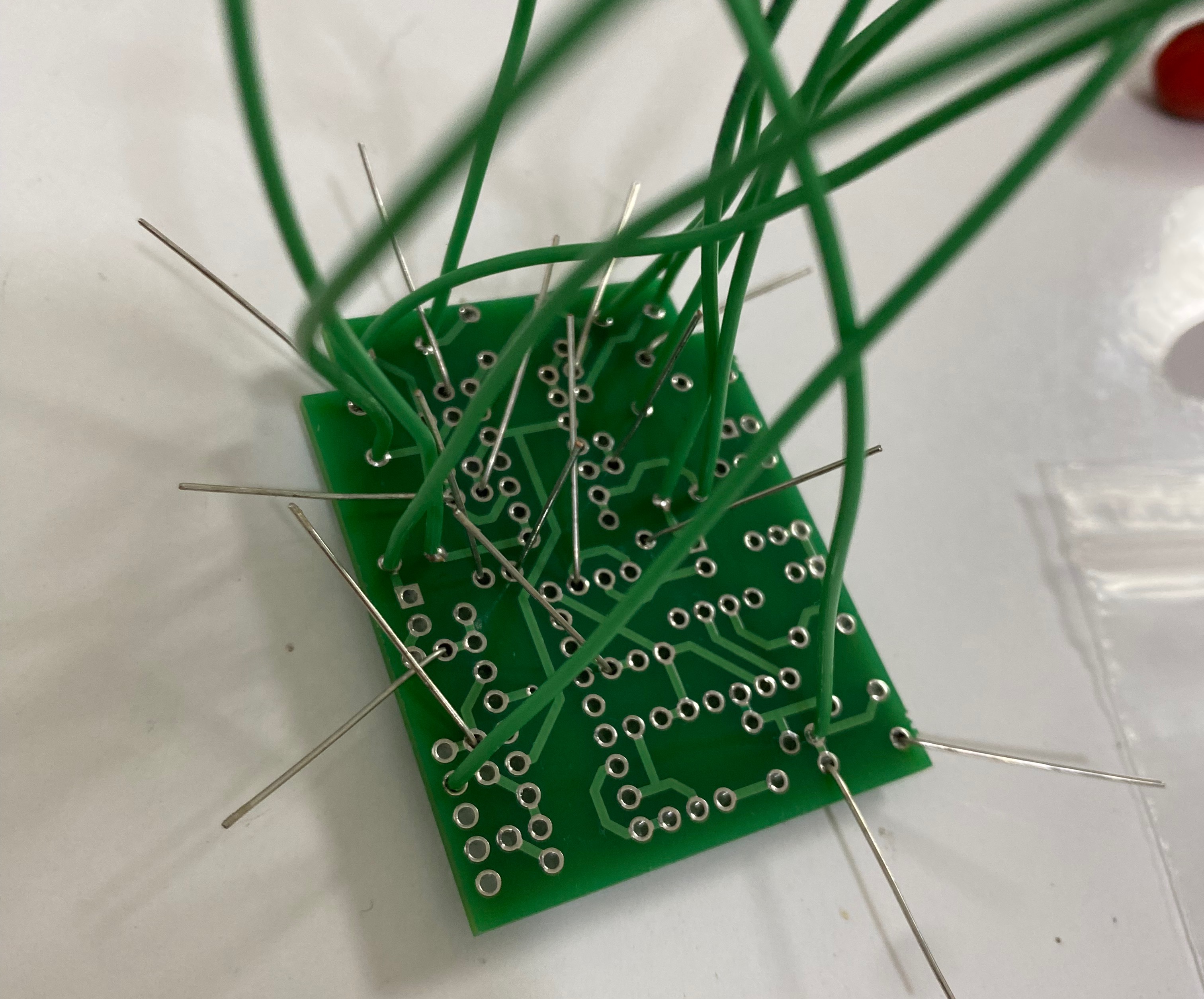 배선을 반대로 해보고자 선재를 먼저 자르고,(양면기판이라 앞뒤로 땜가능)